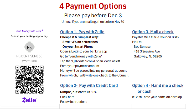 $25 pp (same price as last year)